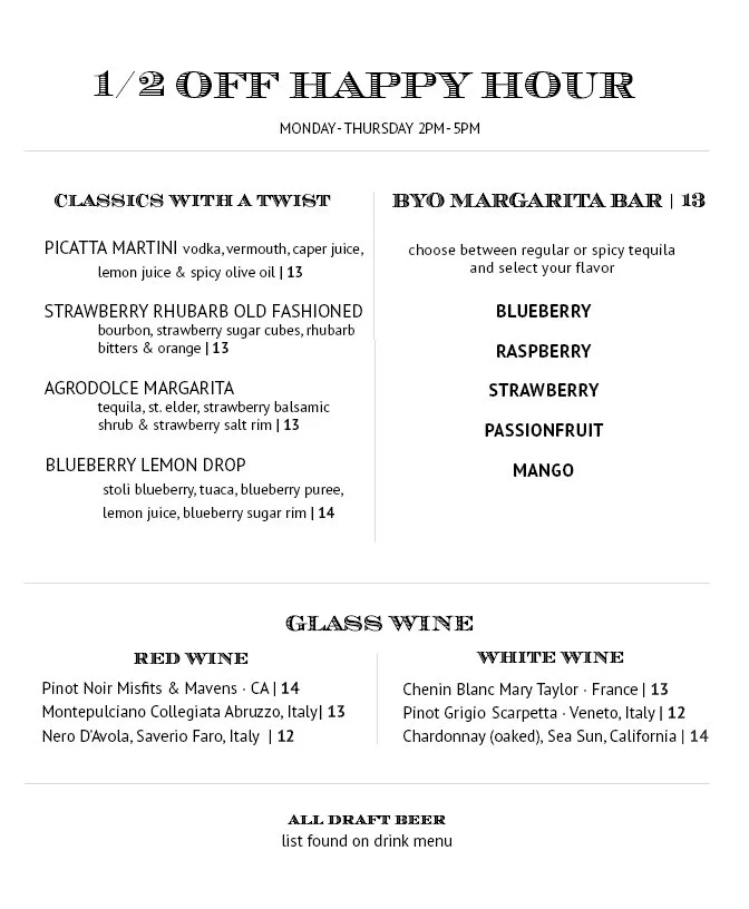 Happy Hour menu
